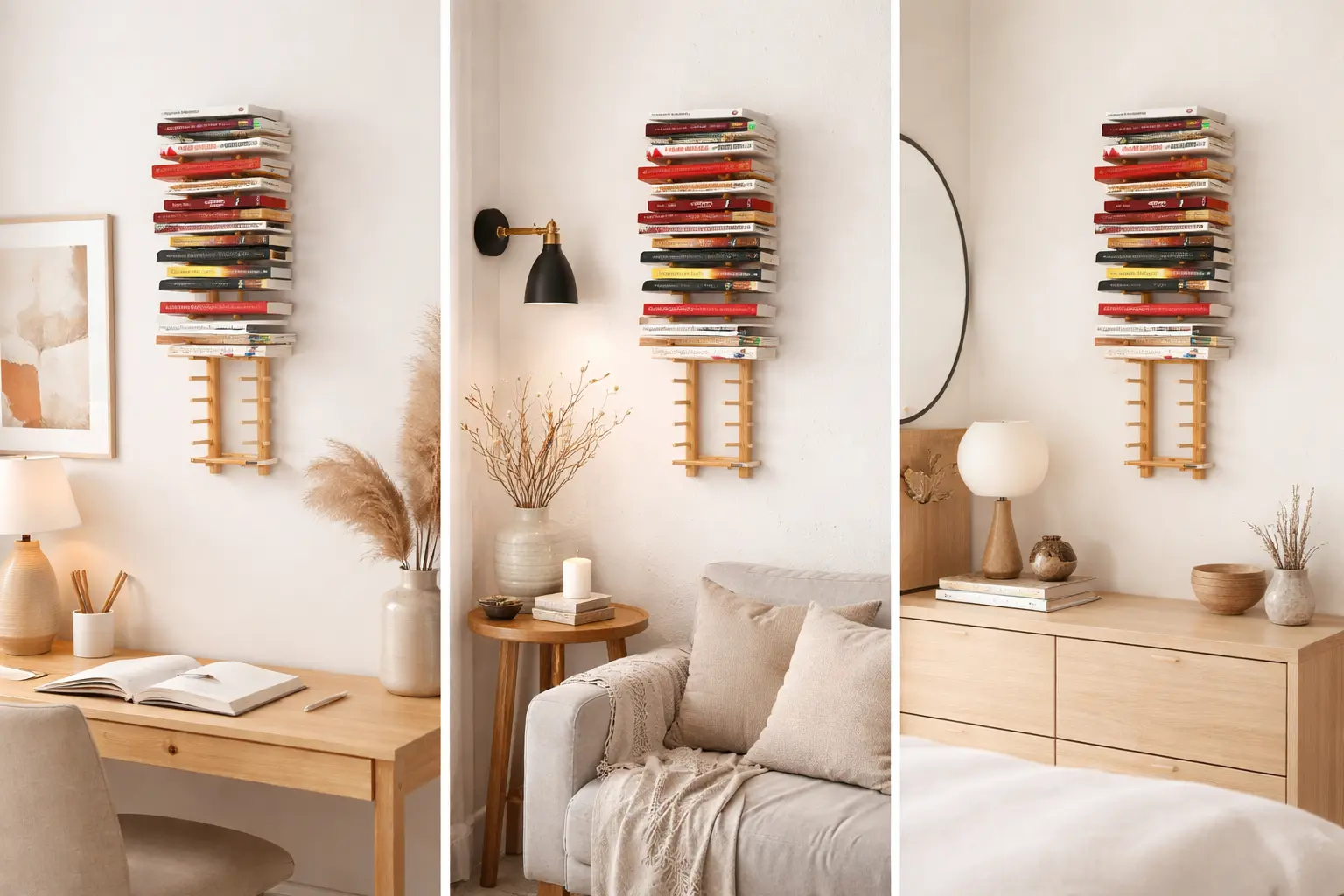 Cette étagère murale verticale en bois naturel offre une solution élégante et moderne pour ranger vos livres tout en économisant de l’espace. Son design minimaliste crée un effet visuel unique : les livres semblent flotter sur le mur, apportant une touche contemporaine et raffinée à votre intérieur.